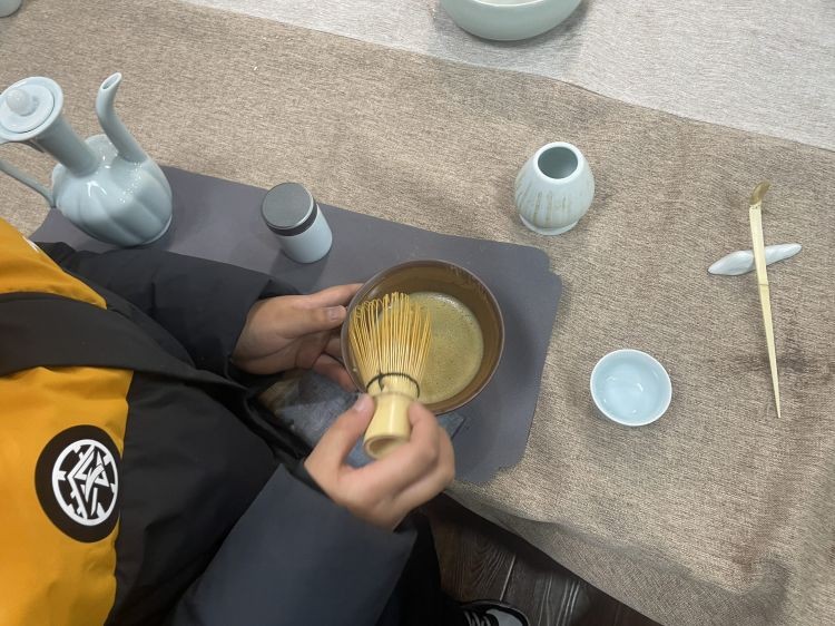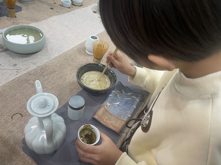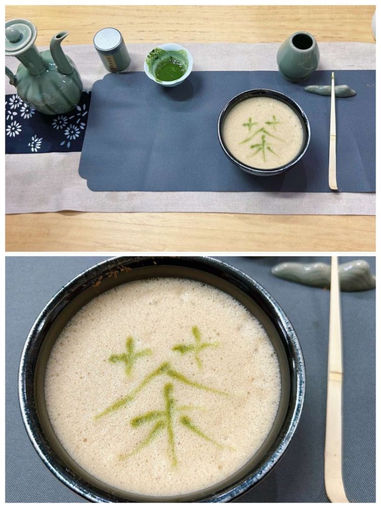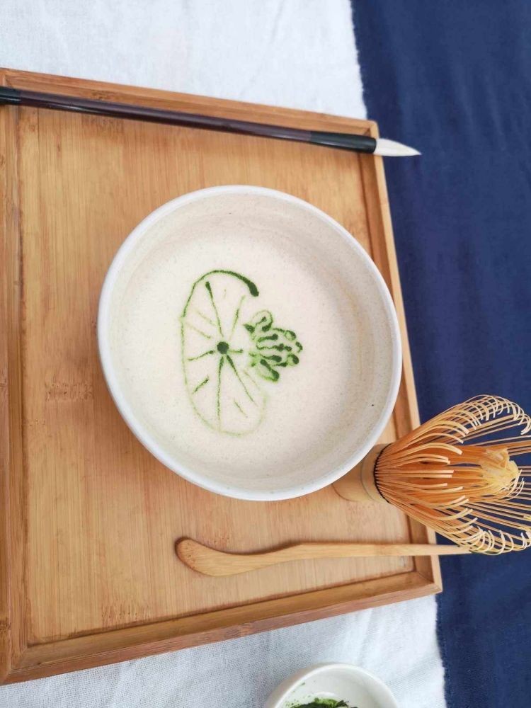 等到击拂出绵密的泡沫,我们开始调抹茶粉准备作画。