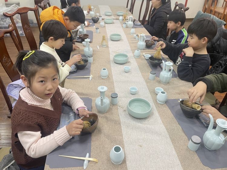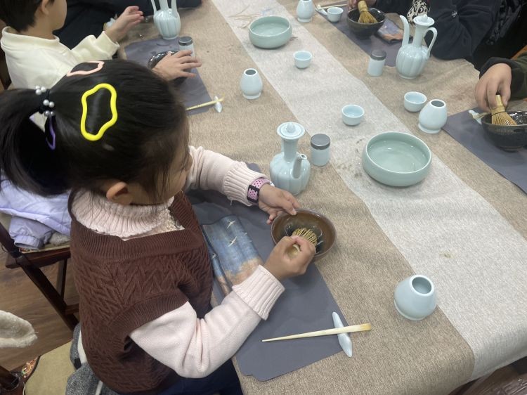 宋人点茶,是茶史上最美的滋味,是宋人最极致的生活品味。宋人把心中最美的山水,刻在画里,也在茶里。古语云“读万卷书行万里路”,想让孩子们眼之所及、手之所触、口之所尝……切身去感受一个时代的茶文化,特意准备了点茶工具。想让孩子们了解的不只是宋代的茶,而是宋代人理解茶,运用茶的智慧,一种悠然自得的饮茶方式。