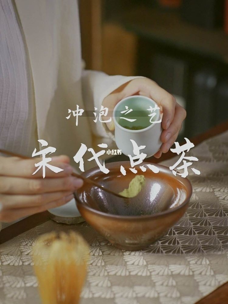 首先取适量茶末放进茶盏,先加少量沸水,将茶末与水调和成胶状茶膏。片刻之后,再正式注入沸水,用筅搅拌,直到打出超绵密的泡沫。