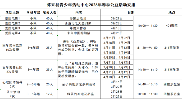 仅限春季班学员参加,电影每人限报两场,否则系统会根据报名先后顺序,自动删除多报的电影。选择活动时,与已报的培训学科错开时间,请不要占用名额,以免影响下次报名。