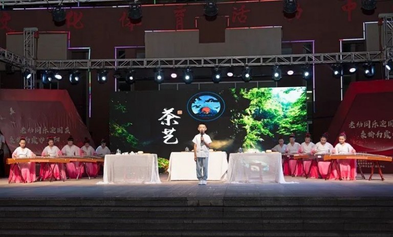 滦南县青少年活动中心迎国庆文艺汇演现场的古筝茶艺表演《琴韵茶香》