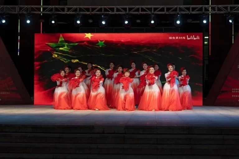 滦南县俪人舞蹈队迎国庆文艺汇演现场的舞蹈《亲吻祖国》