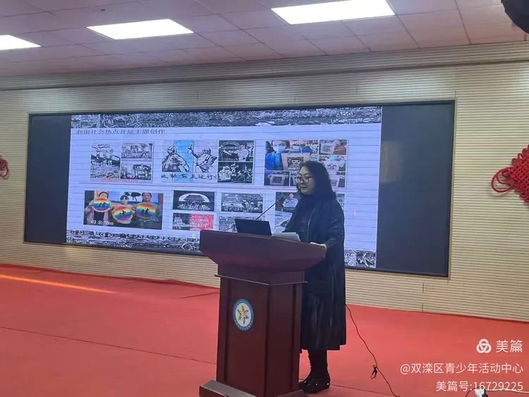 顺义区少年宫中国少年儿童版画研究会会员左晓茹老师以《版印生活》为题,介绍了该区版画社团的课程与综合实践活动的融合,顺义少年宫教研室张静主任带来的《“鼓”舞青春》曾庄大鼓专题分享,为与会教师打开了利用区域文化资源提升学生综合素养的新思路。
