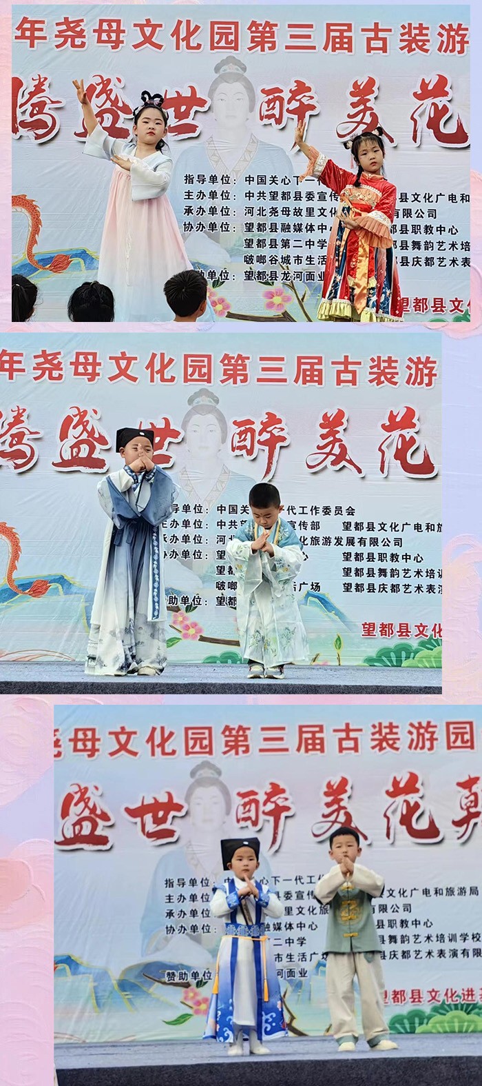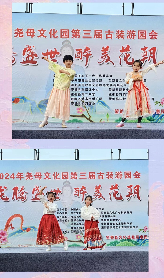4月14日,望都县青少年校外活动中心组织近40名小学员盛装参加望都县2024尧母文化园第三届古装游园会。此次游园会的主题为“龙腾盛世 醉美花朝”。众所周知,花朝节有着悠久历史,节日前后人们会组织游春、踏青、赏红等诸多有趣活动,花朝节凝聚了中国古人对自然和生命的热爱。在此时于尧母文化园开展古装游园活动,可以让孩子们感受传统华服之美、领略中华传统文化魅力。