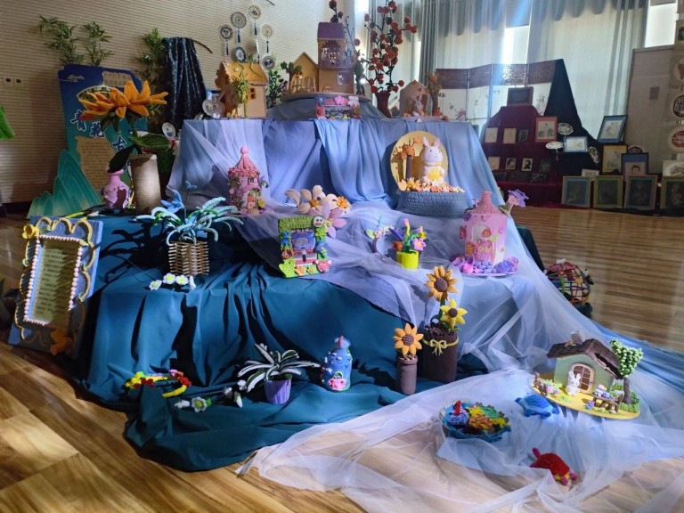 五一期间,孩子们徜徉在艺术的殿堂,被多彩的艺术品深深的吸引。利用废旧材料制作的艺术龙展品,惟妙惟肖,巧夺天工;扎染作品突出了国画效果,艺术感染力更加的浓厚;轻粘土制作的作品塑形准确,色彩艳丽,深受孩子们的喜爱。一幅幅艺术作品是孩子们看世界的另一种语言,斑斓的色彩、稚嫩的线条、夸张的造型、多元的创意,无处不彰显着鲜明的个性和传统文化的魅力。