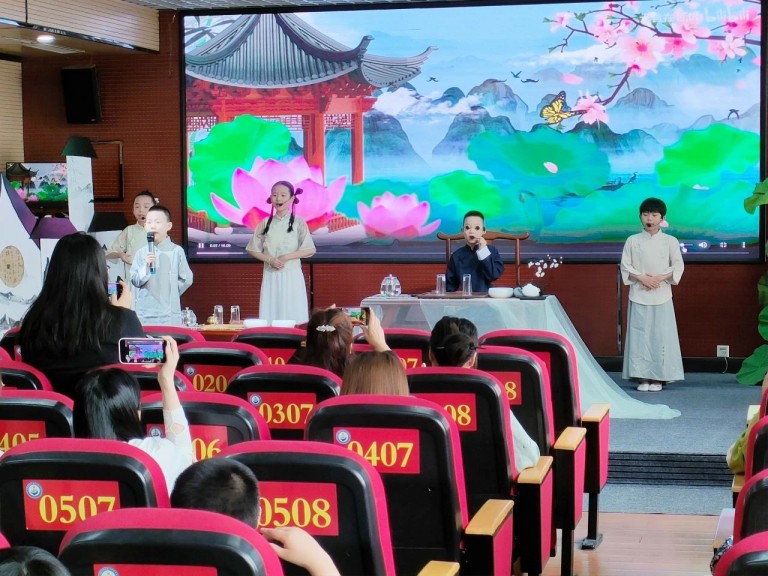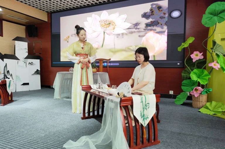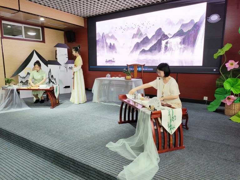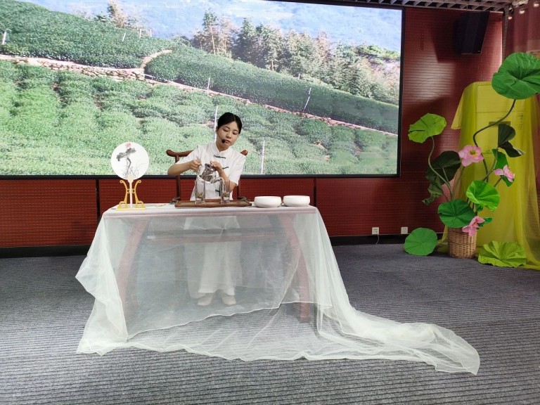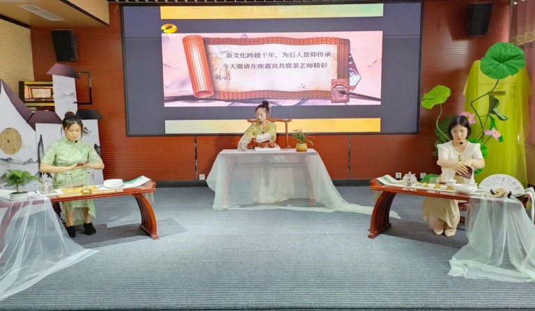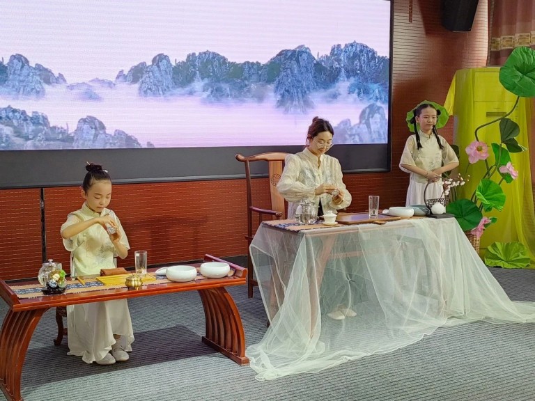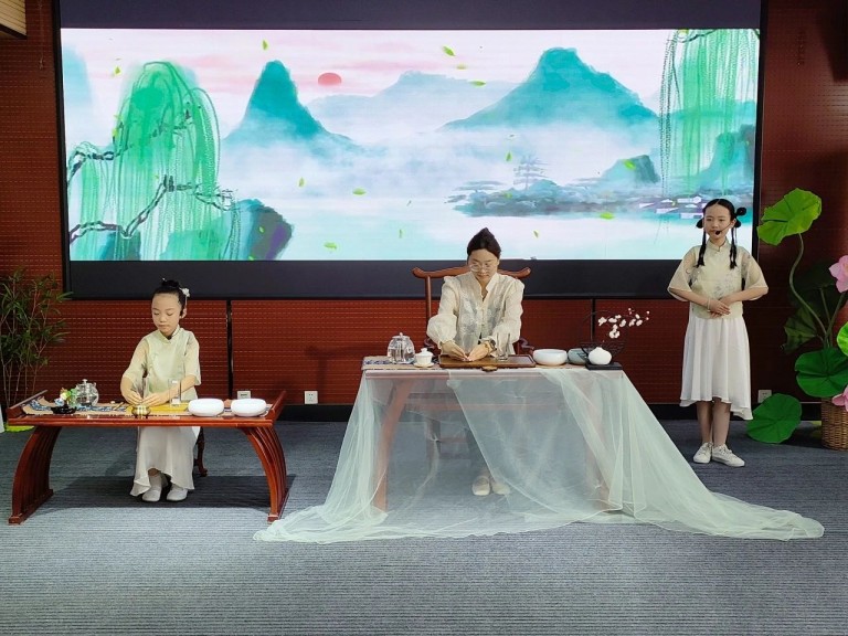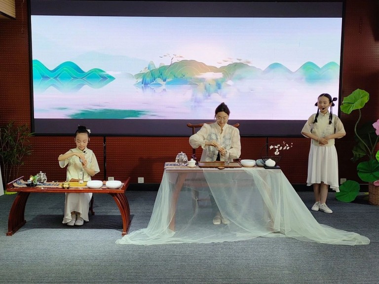 12所茶艺特色学校进行了精彩的茶艺展示,师生通过情景剧,展现茶文化的博大精深。温盅烫盏、置茶入杯、温润香茗、悬壶高冲,茶香四溢,在悠扬的古筝韵律中,茶艺的展示环节更是美轮美奂。