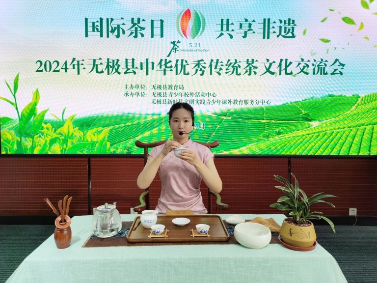 茶起源于中国,盛行于世界。茶文化是中华优秀传统文化的重要组成部分,为了深入开展“茶文化进校园”活动,弘扬中华优秀传统茶文化。5月20日,第五届“国际茶日”来临之际,由无极县教育局主办,无极县青少年校外活动中心和新时代文明实践分中心承办的,“2024年无极县中华优秀传统茶文化交流会”,在实验初级中学成功举办。