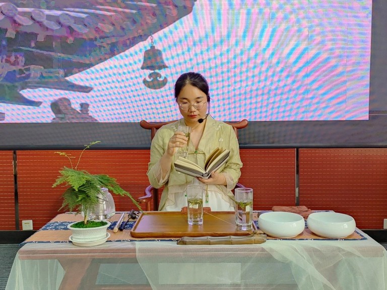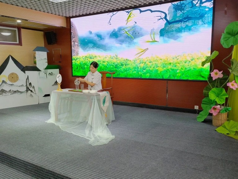 尖尖的叶芽如枪,展开的叶片如旗,绿茶的茶汤清纯甘鲜,淡而香远。实验小学南校区张佳老师“以茶会友,茶香悠悠”,小西门小学郄伟青老师“琴茶一味”,前北焦小学王芳芳老师 “一半诗词,一半茶香”,三位老师展示的绿茶表演,淡淡的香气中品出天地间至清、至醇、至真、至美的韵味。