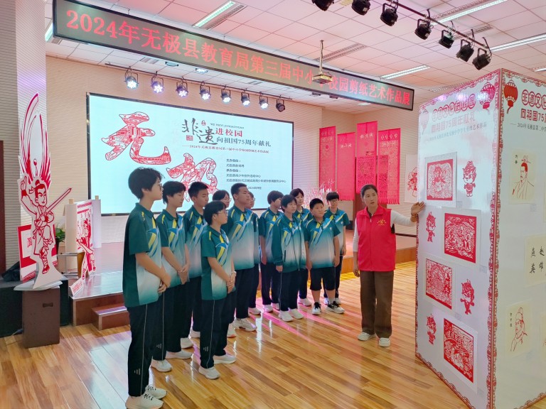 为了庆祝新中国成立75周年,更好的开展爱国主义教育,展示“传统文化进校园”的丰硕成果。近日,无极县教育局第三届中小学校园剪纸艺术作品展,在青少年校外活动中心隆重开幕。